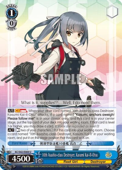 Card Text: | [AUTO] [CXCOMBO] When your other card named "10th Asashio-class Destroyer, Kasumi Kai-II-Otsu" attacks, if a card named "Kasumi, anchors aweigh! Please follow me!" is in your climax area, and this card is in your center stage, put the top card of your deck into your waiting room. If that card is level 1 or higher, you may draw a card. (Climax are regarded as level 0)