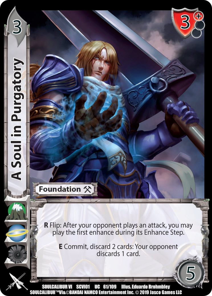 E Commit, discard 2 cards: Your opponent discards 1 card. RFlip: After your opponent plays an attack, you may play the first enhance during the Enhance Step. |