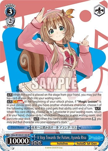 | Card Text: | [AUTO] When this card is placed on the stage from your hand, you may put the top card of your clock into your waiting room. [AUTO] [CXCOMBO] At the beginning of your attack phase, if "Magic Lesson" is in your climax area, and you have another "hololive" character, choose 1 of the following abilities, and this card gets that ability until end of turn. "[AUTO] When this card attacks, choose up to 1 character in your waiting room, return it to your hand, choose up to 1 "hololive" character in your waiting room, and put it into your stock." "[AUTO] When this card's battle opponent becomes [REVERSE], you may put that character into your opponent's clock." |
