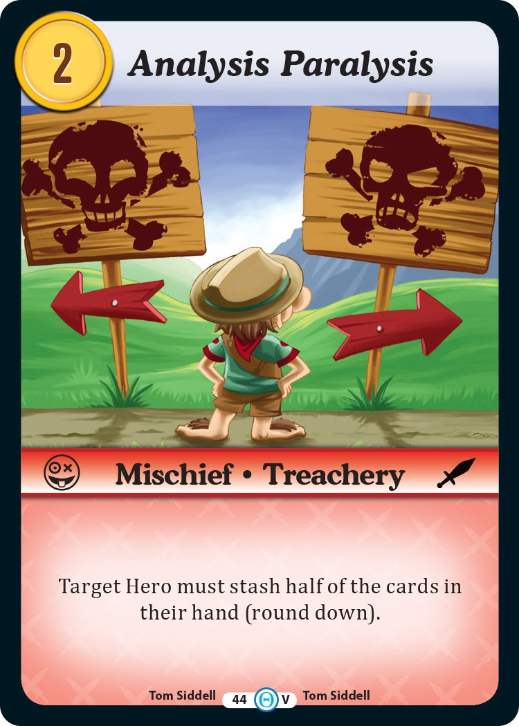 | Description: | Target Hero must stash half of the cards in their hand (round down). |
