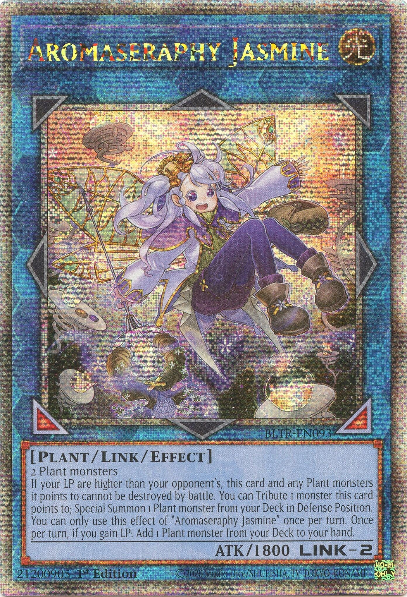 Description: | 2 Plant monsters If your LP are higher than your opponent's, this card and any Plant monsters it points to cannot be destroyed by battle. You can Tribute 1 monster this card points to; Special Summon 1 Plant monster from your Deck in Defense Position. You can only use this effect of "Aromaseraphy Jasmine" once per turn. Once per turn, if you gain LP: Add 1 Plant monster from your Deck to your hand. |