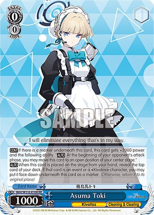| Card Text: | [CONT] If there is a marker underneath this card, this card gets +2000 power and the following ability. "[AUTO] At the beginning of your opponent's attack phase, you may move this card to an open position of your center stage." [AUTO] When this card is placed on the stage from your hand, reveal the top card of your deck. If that card is an event or a "Kivotos" character, you may put it face down underneath this card as a marker. (Otherwise, return it to its original place) |