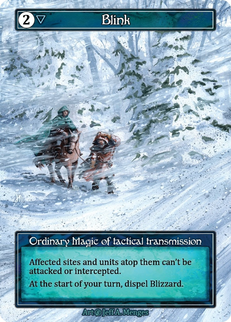 Errata: All printings of Blink (Foil) in Beta feature the Threshold, Art, Art Credit and Game text from the card Blizzard (Foil)