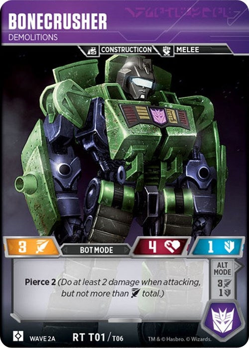 When this attacks -> You may scrap a card from your hand. If you do, put a height counter on your Tower. Bot Mode: Pierce 2 (Do at least 2 damage when attacking, but not more than [ATK] total.) |