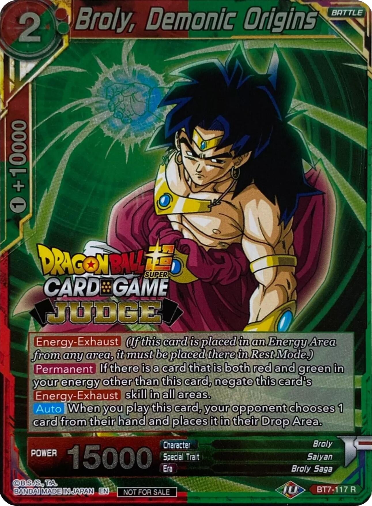 BANDAI Disclaimer: | This promotional card is marked “Not For Sale” by BANDAI, as the manufacturer prefers that Stores do not sell these cards. |
