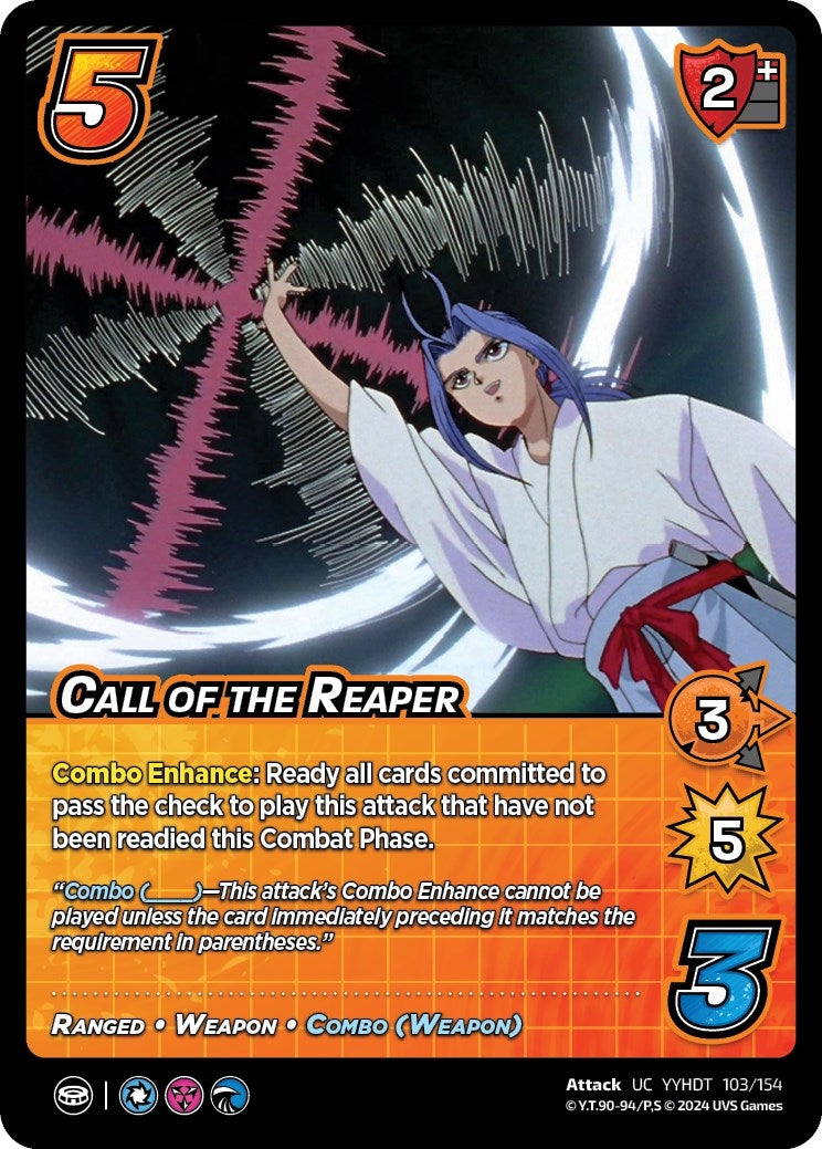 Combo Enhance: Ready all cards committed to pass the check to play this attack that have not been readied this Combat Phase. "Combo (____)—This attack's Combo Enhance cannot be played unless the card immediately preceding it matches the requirement in parentheses." |
