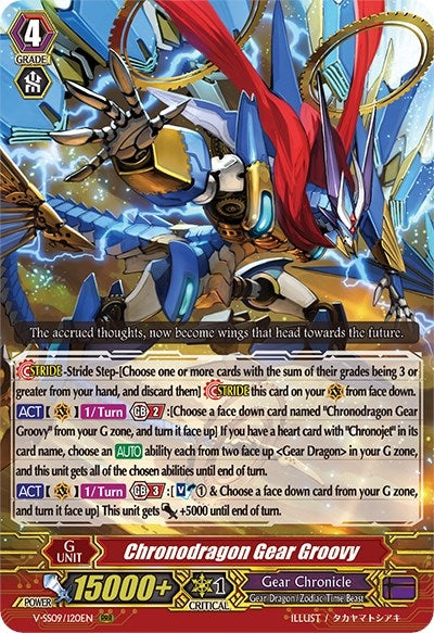 [ACT](VC)[1/Turn] Generation Break 2: [Choose a face down card named "Chronodragon Gear Groovy" from your G zone, and turn it face up] If you have a heart card with "Chronojet" in its card name, choose a [AUTO] ability of two face up "Gear Dragon" from your G zone, and this unit gets all of the chosen abilities until end of turn.