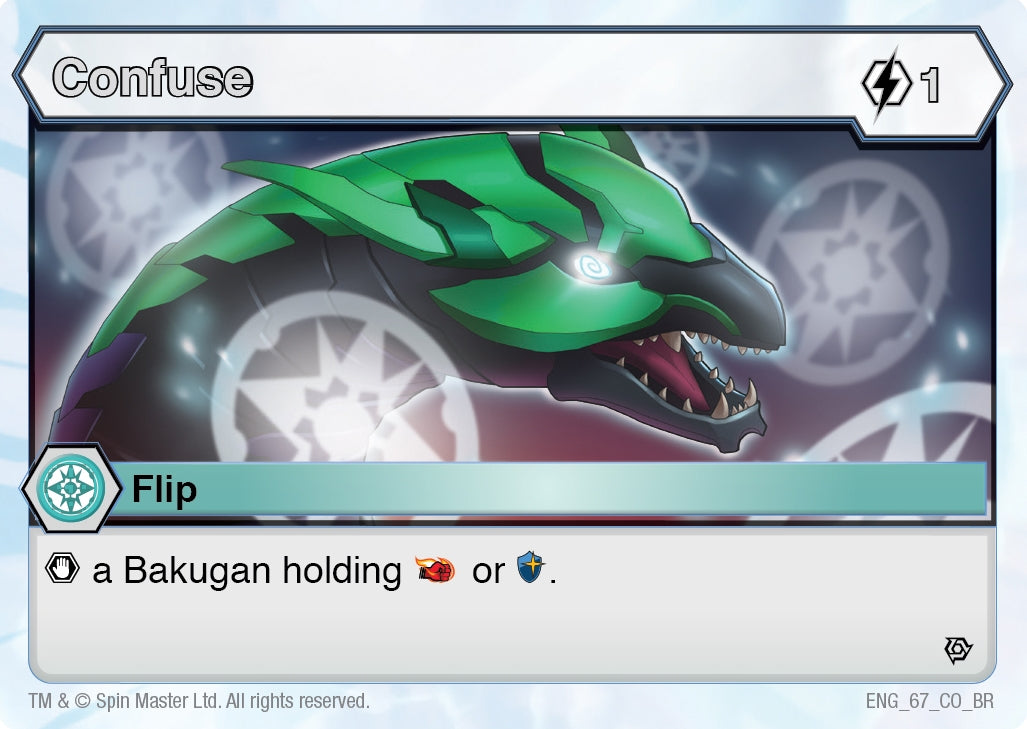 Description: | [Stop] a Bakugan holding [FlamingFist] or [MagicShield]. |