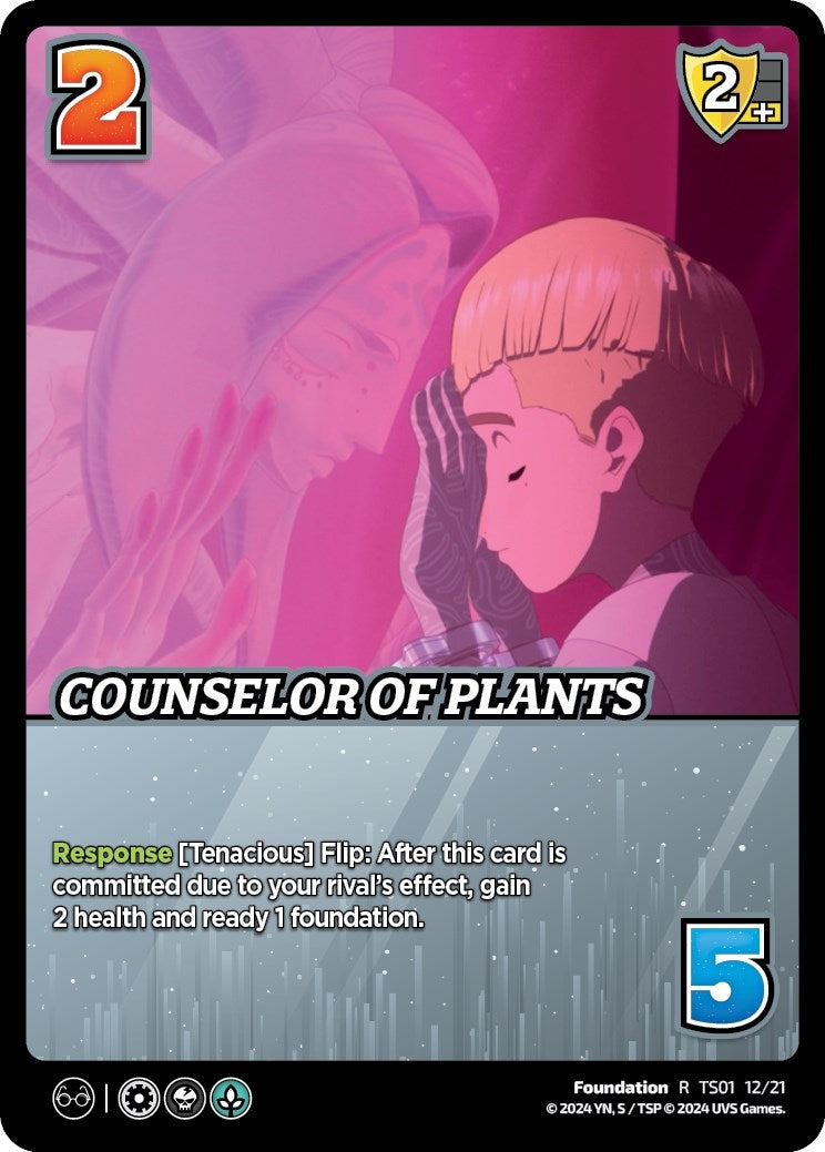 Response [Tenacious] Flip: After this card is committed due to your rival’s effect, gain 2 health and ready 1 foundation.