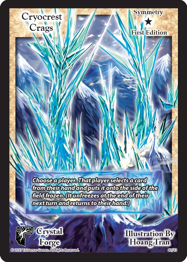 Description: | Choose a player. That player selects a card from their hand and puts it onto the side of the field frozen. (It unfreezes at the end of their next turn and returns to their hand.) |