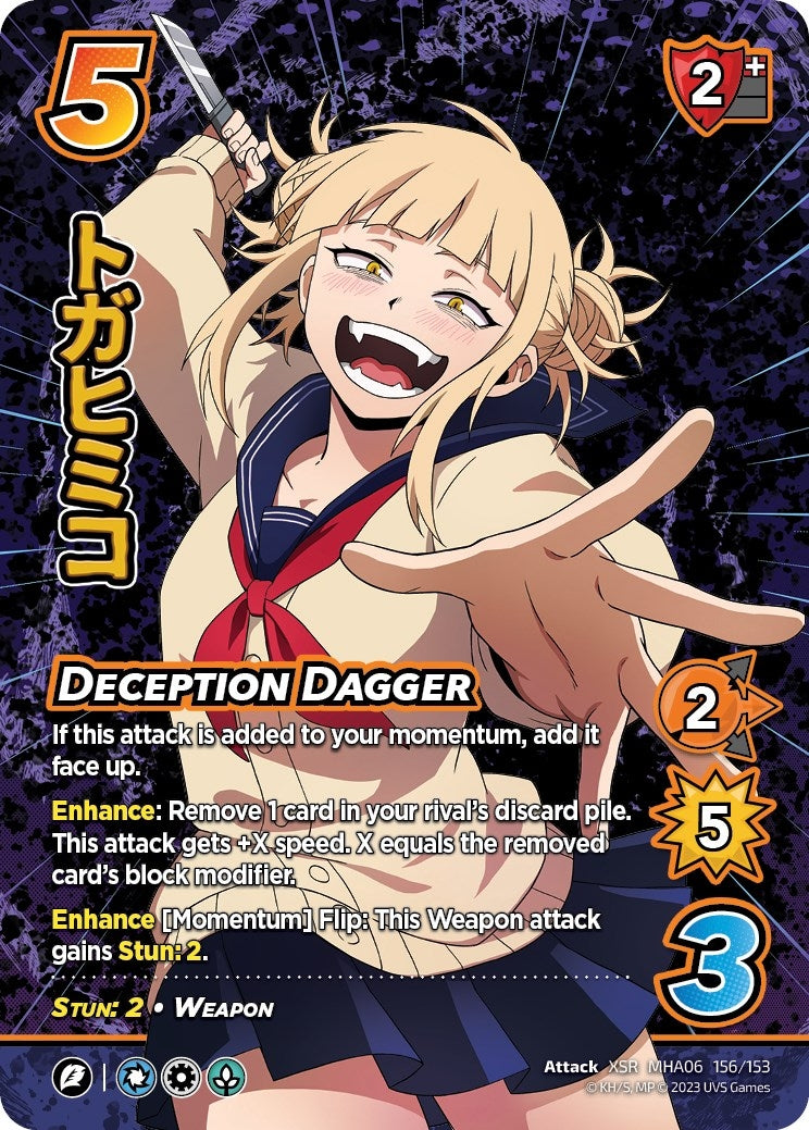 Enhance: Remove 1 card in your rival's discard pile. This attack gets +1 speed. X equals the removed card's block modifier. Enhance [Momentum] Flip: This Weapon attack gains Stun: 2. |