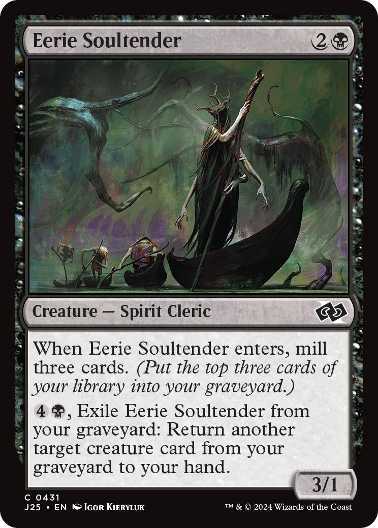 Rules Text Contains: | When Eerie Soultender enters, mill three cards. (Put the top three cards of your library into your graveyard.)