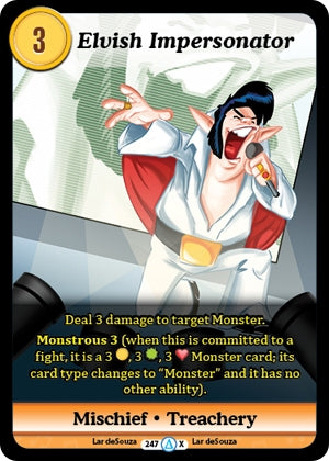 Monstrous 3 (When this is committed to a fight, it is a 3 [gold], 3 [power], 3 [life] Monster card. Its card type changes to "Monster" and it has no other ability.)