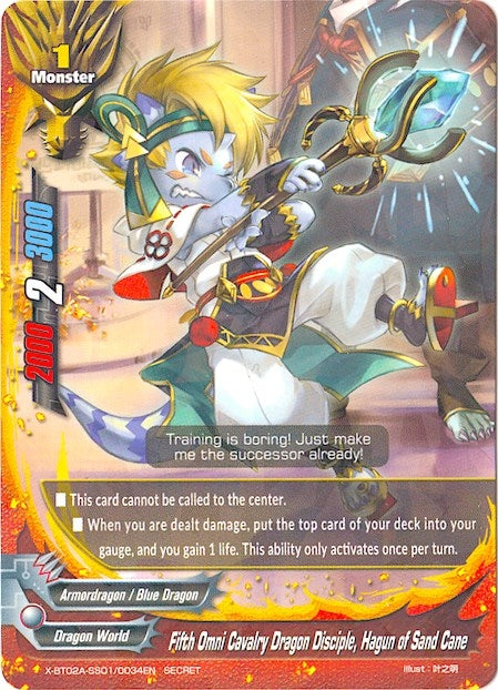Fifth Omni Cavalry Dragon Disciple, Hagun of Sand Cane (Secret R Foil) (Evolution & Mutation) (X-BT02A-SS01/0034EN)