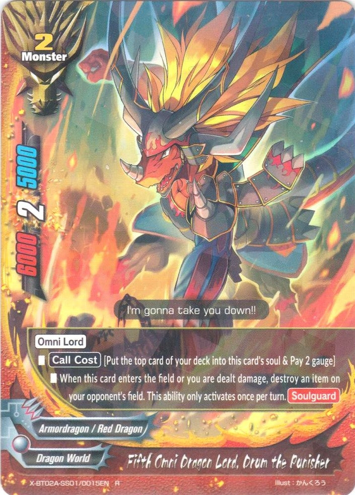 [Call Cost] [Put the top card of your deck into this card's soul & Pay 2 gauge] When this card enters the field or you are dealt damage, destroy an item on your opponent's field. This ability only activates once per turn. [Soulguard] |