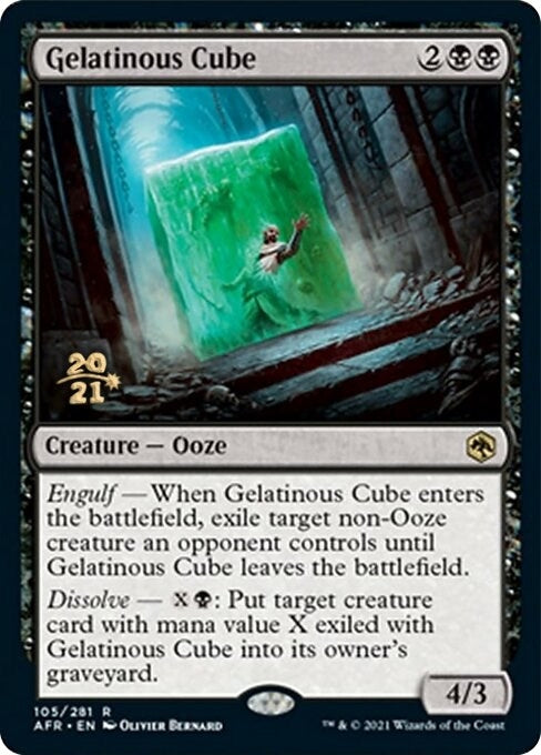 Engulf — When Gelatinous Cube enters the battlefield, exile target non-Ooze creature an opponent controls until Gelatinous Cube leaves the battlefield.
