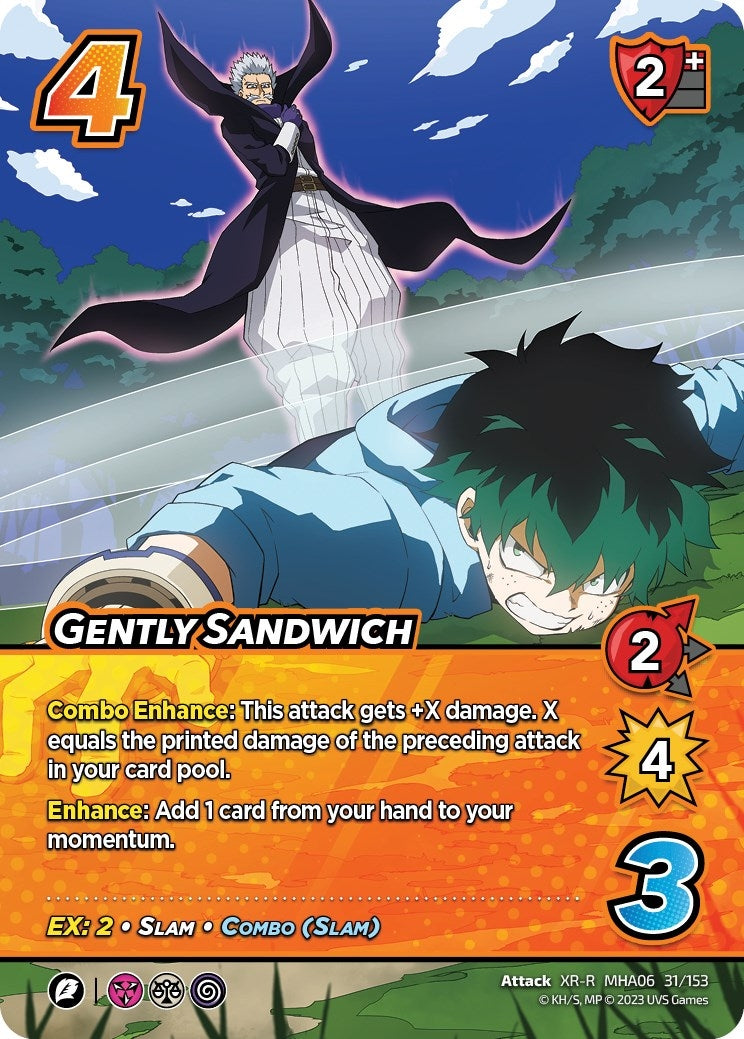 | Description: | Combo Enhance: This attack gets +X damage. X equals the printed damage of the preceding attack in your card pool. Enhance: Add 1 card from your hand to your momentum. |