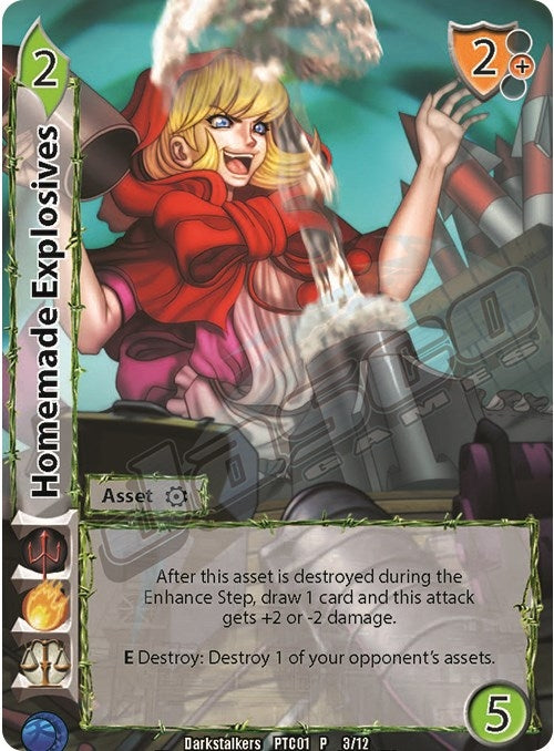 Description: | After this asset is destroyed during the Enhance Step, draw 1 card and this attack gets +2 or -2 damage. E Destroy: Destroy 1 of your opponent's assets. |