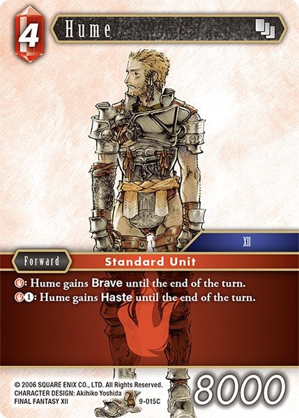 [1][R]: Hume gains Haste until the end of the turn. - Card Type: Forward