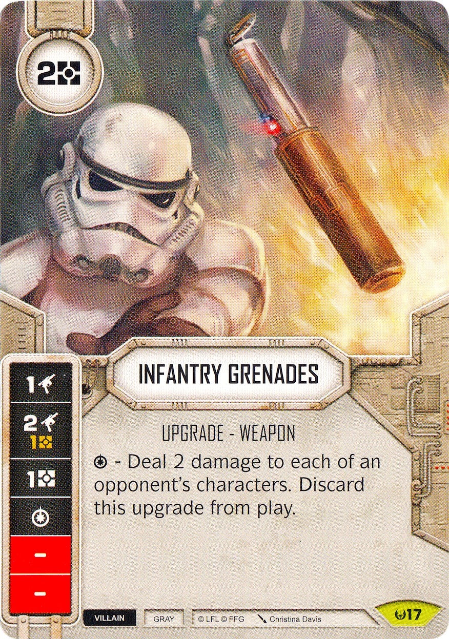 | Description: | Special: Deal 2 damage to each of an opponent's characters. Discard this upgrade from play. |