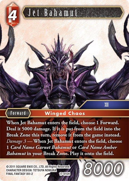 Damage 3 — When Jet Bahamut enters the field, choose 1 Card Name Garnet Bahamut or Card Name Amber Bahamut in your Break Zone. Play it onto the field. |