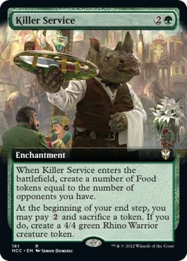 Rules Text Contains: When Killer Service enters the battlefield, create a number of Food tokens equal to the number of opponents you have.