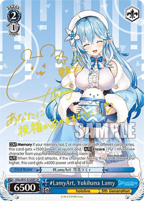 Card Text: | [CONT] Memory If your memory has 2 or more cards with different card names, this card gets +1500 power, "Liquor", and "[AUTO] Encore [Put 1 "hololive" character from your hand into your waiting room]". [AUTO] When this card attacks, if the character facing this card is level 3 or higher, this card gets +6000 power until end of turn. |