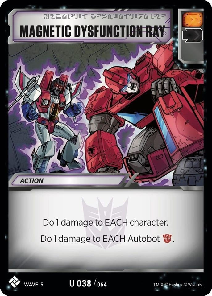 Do 1 damage to EACH character. Do 1 damage to EACH Autobot. |