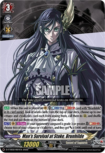 Description: | [AUTO]:When this unit is placed on (VC), [COST][Counter-Blast 2 & Soul-Blast 1 card with "Brunhilde" in its card name], look at seven cards from the top of your deck, choose up to one [ACT](VC)[1/turn]:If your opponent's vanguard is grade 3 or greater, [COST][Soul-Blast 1], choose two of your |