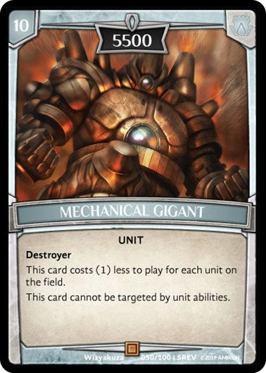 This card costs (1) less to play for each unit on the field. This card cannot be targeted by unit abilities. |