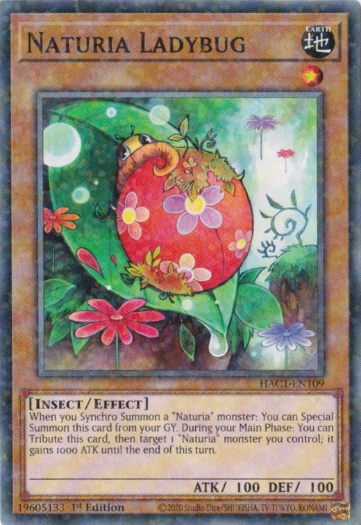 When you Synchro Summon a Naturia Synchro Monster, you can Special Summon this card from your GY. During your Main Phase, you can Tribute this card to select 1 face-up Naturia monster you control. That monster gains 1000 ATK until the End Phase.