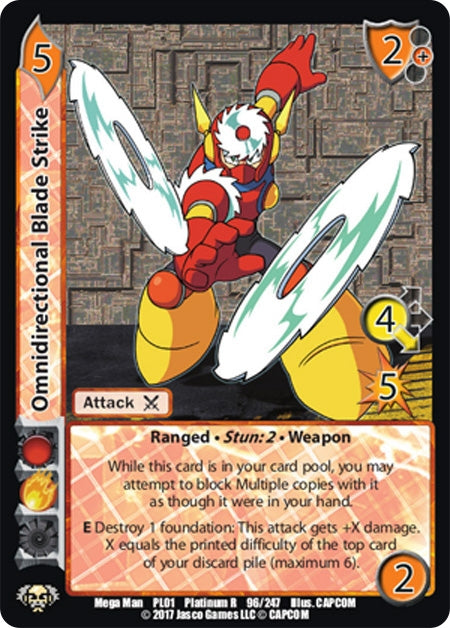 E Destroy 1 foundation: This attack gets +X damage. X equals the printed difficulty of the top card of your discard pile (maximum 6).