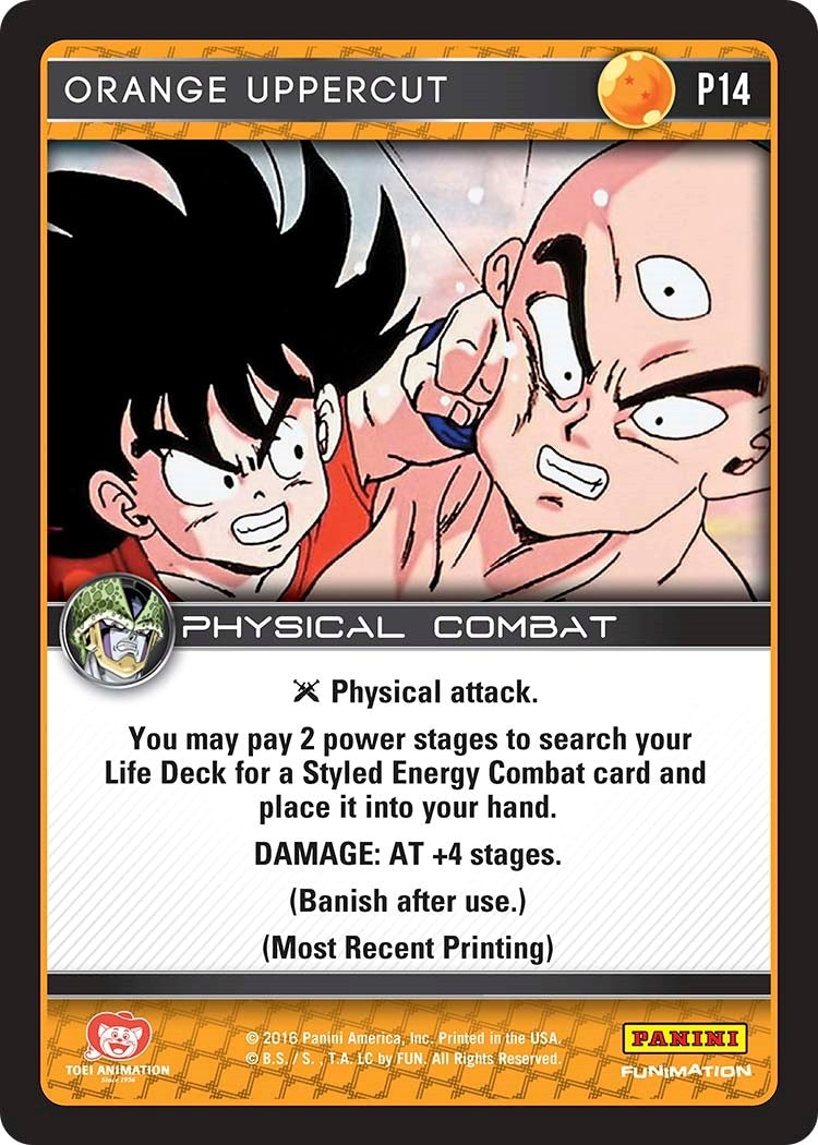 You may pay 2 power stages to search your Life Deck for an Energy Combat card and place it into your hand. DAMAGE: AT +4 stages. (Banish after use.) (Most Recent Printing) |