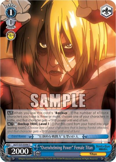 Card Text: | [AUTO] When you use this card's "Backup", if the number of {Titan} characters you have is three or more, choose one of your characters in battle, and that character gets +1500 power until end of turn.