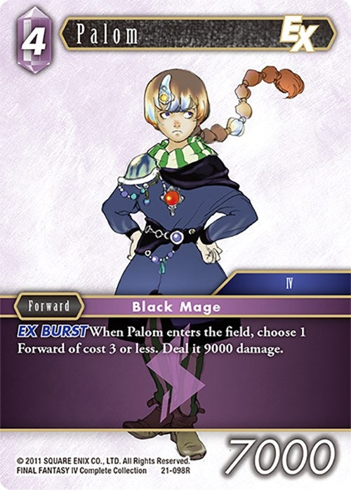 - Description: EX BURST When Palom enters the field, choose 1 Forward of cost 3 or less. Deal it 9000 damage.