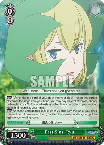 Card Text: | [AUTO] [(1) Put the top card of your deck into your clock] When this card is placed on the stage from your hand, you may pay the cost. If you do, choose 1 “Familia“ or “Guild“ or “Hostess of Fertility“ character in your waiting room, and return it to your hand. [AUTO] When this card attacks, look at up to 2 cards from the top of your deck, choose 1 card from among them, put it on the top of your deck, and put the rest into your waiting room. |