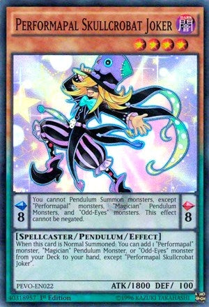 Monster Effect : When this card is Normal Summoned: You can add 1 "Performapal" monster, "Magician" Pendulum Monster, or "Odd-Eyes" monster from your Deck to your hand, except "Performapal Skullcrobat Joker".