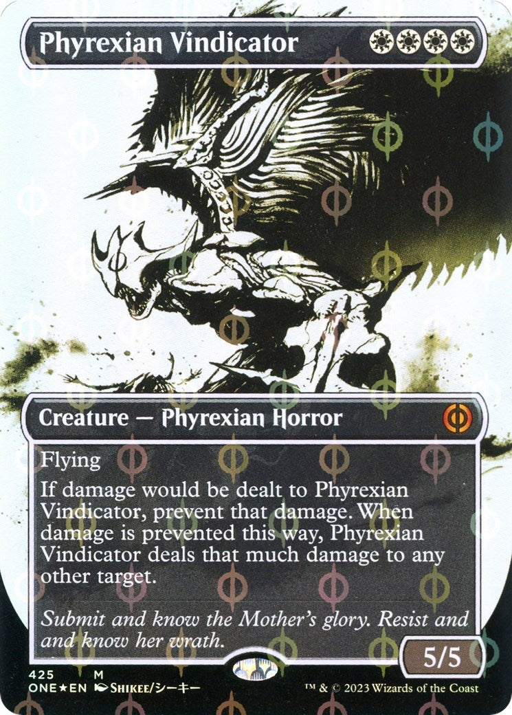 If damage would be dealt to Phyrexian Vindicator, prevent that damage. When damage is prevented this way, Phyrexian Vindicator deals that much damage to any other target. |