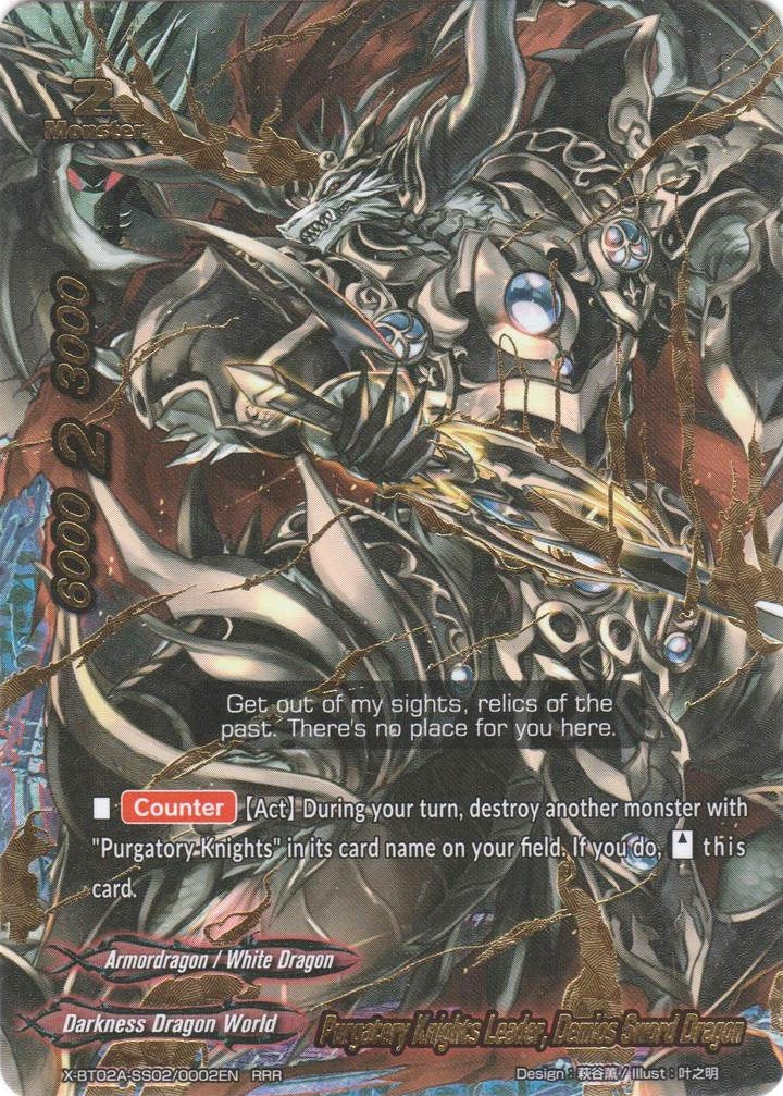 Description: | [Counter] [Act] During your turn, destroy another monster with "Purgatory Knights" in its card name on your field. If you do, [Stand] this card. |
