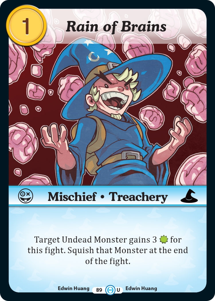 Description: | Target Undead Monster gains 3 [power] for this fight. Squish that Monster at the end of the fight. |