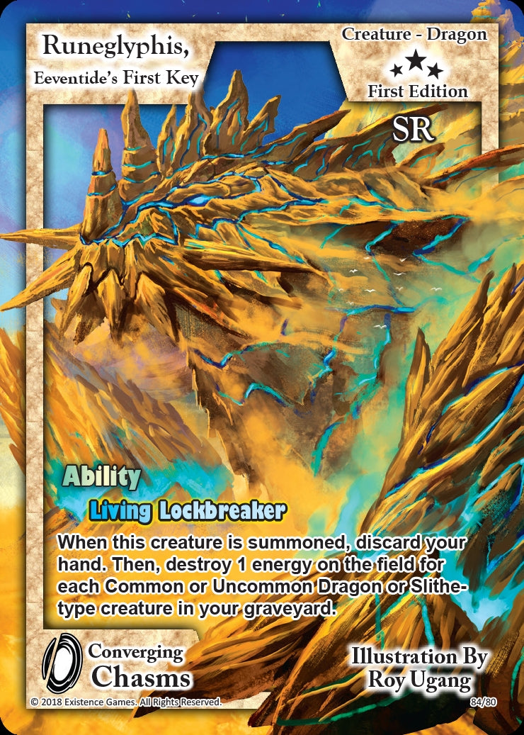 Ability Living Lockbreaker When this creature is summoned, discard your hand. Then, destroy 1 energy on the field for each Common or Uncommon Dragon or Slithe-type creature in your graveyard. |