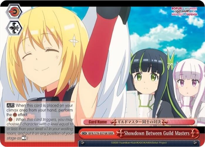 | Card Text: | [AUTO] When this card is placed on your climax area from your hand, perform the Standby effect. (Standby: When this card triggers, you may choose 1 character with a level equal to or less than your level +1 in your waiting room, and put it on any position of your stage as [REST]) |