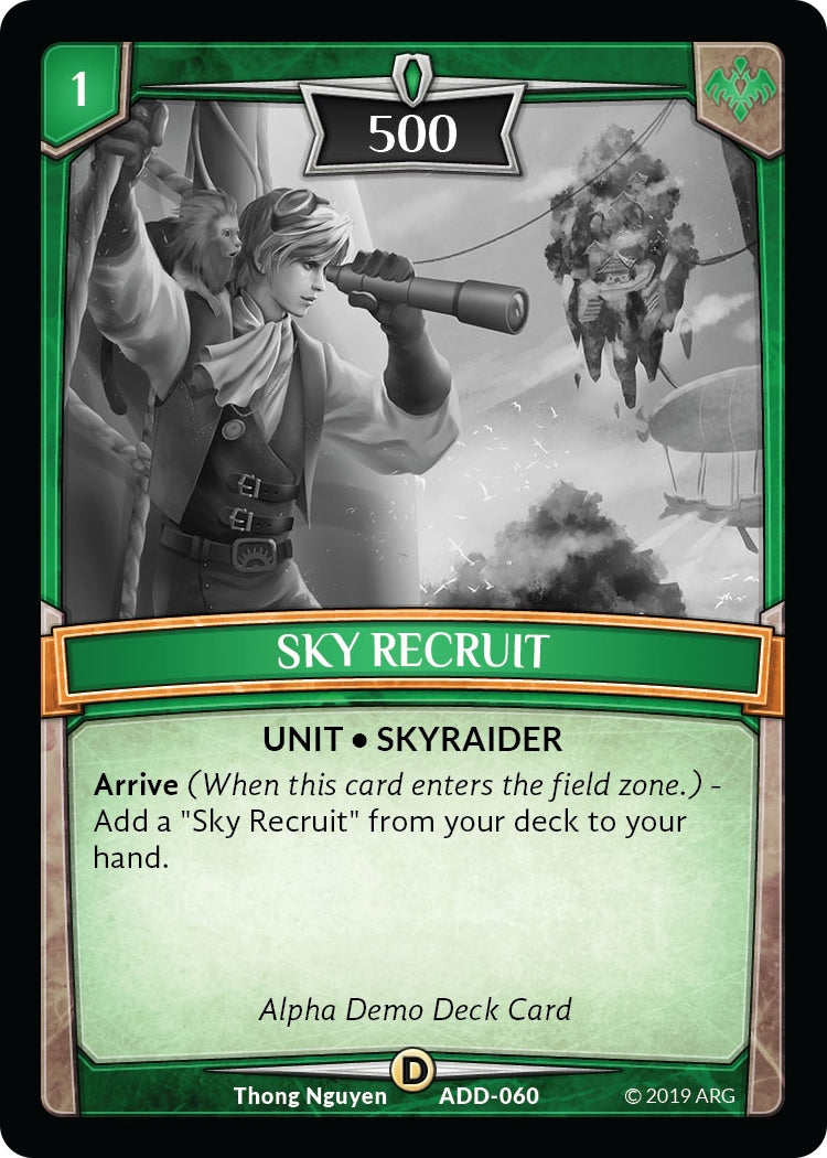 Arrive (When this card enters the field zone.) - Add a "Sky Recruit" from your deck to your hand.