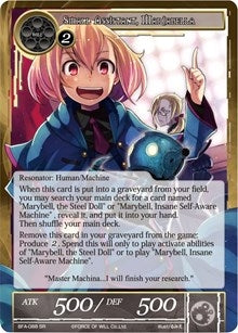 | Rules Text Contains: | When this card is put into a graveyard from your field, you may search your main deck for a card named "Marybell, the Steel Doll" or "Marybell, Insane Self-Aware Machine", reveal it, and put it into your hand. Then shuffle your main deck.