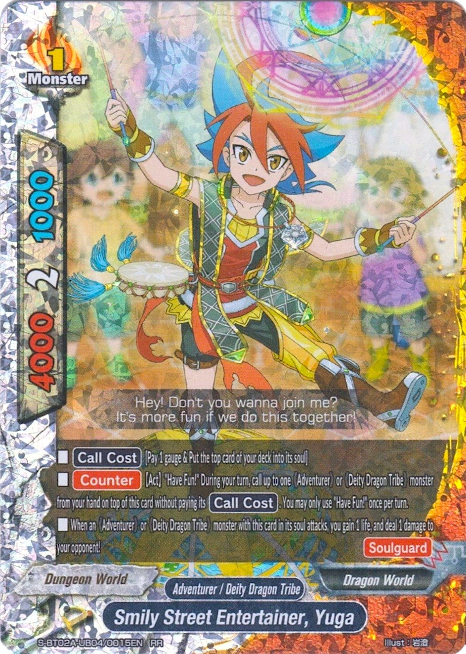 [Counter] [Act] "Have Fun" During your turn, call up to one "Adventurer" or "Deity Dragon Tribe" monster from your hand on top of this card without paying its [Call Cost]. You may only use "Have Fun" once per turn. When an "Adventurer" or "Deity Dragon Tribe" monster with this card in its soul attacks, you gain 1 life, and deal 1 damage to your opponent! [Soulguard] |