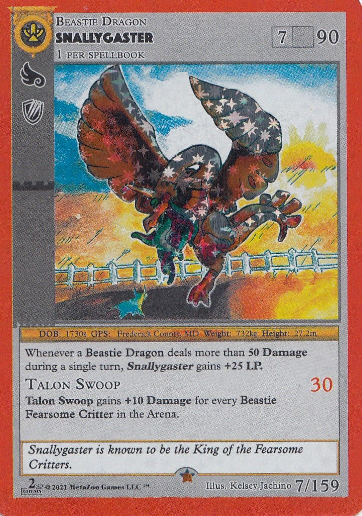 Ability: | Whenever a Beastie Dragon deals more than 50 Damage during a single turn, Snallygaster gains +25 LP. |