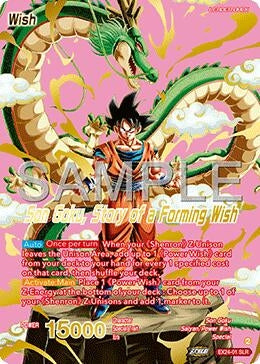 Description: | [Permanent] You can only include Z Unisons in your Z Dock [Activate:Main] Switch this card to Rest Mode : Add up to 2 "Power Wish" cards from your deck to your hand, then shuffle your deck. [Wish] If you have a total of 7 or more "Power Wish" cards with different card names among all cards in your Z-Energy and/or Drop : Switch up to 1 of your energy to Active Mode, and add cards from your life to your hand until you have 6 life left. Son Goku, Story of a forming Wish [Auto] [Once per turn] When your "Shenron" Z-Unison leaves the Union Area, add up to 1 "Power Wish" card from your deck to your hand for every 1 specified cost on that card, then shuffle your deck. [Activate:Main] Place 1 "Power Wish" card from your Z-Energy at the bottom of your deck : Choose up to 1 of your "Shenron" Z-Unisons and add 1 marker to it. |