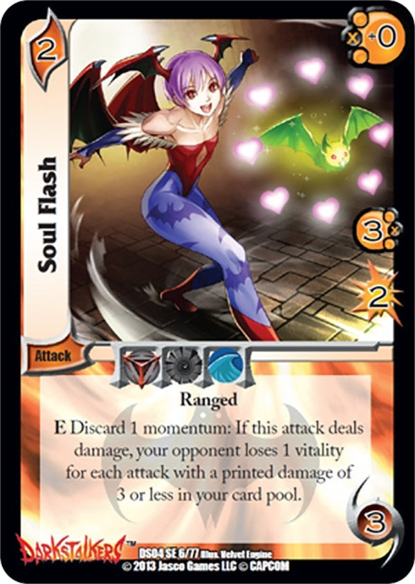 E Discard 1 momentum: If this attack deals damage, your opponent loses 1 vitality for each attack with a printed damage of 3 or less in your card pool.