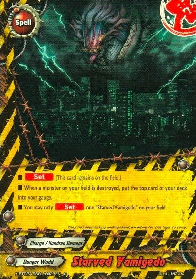 When a monster on your field is destroyed, put the top card of your deck into your gauge. You may only [Set] one "Starved Yamigedo" on your field. |