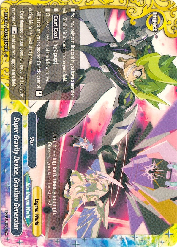 Description: | You may only cast this card if there is a monster with "Zodiac" in its card name on your field. [Cast Cost] [Pay 2 gauge] Choose and use one of the following two. -All cards on your opponent's field cannot [Stand] during your opponent's next start phase. -Deal damage to your opponent equal to the number of [Rest] cards on your opponent's field plus 1! |